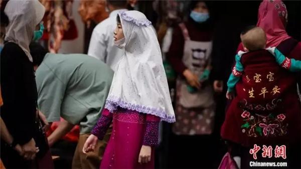 2020年7月,昆明顺城清真寺,女性穆斯林前来参加会礼,欢度“古尔邦节”。中新社记者康平摄